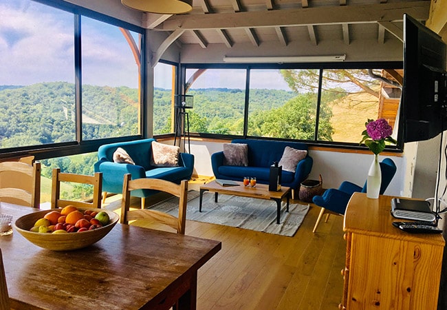 Le salon/salle à manger, récemment rénové, est doté d’un nouveau parquet en chêne, de canapés et de chaises modernes, élégants et aux couleurs vives – un endroit très confortable pour se détendre et contempler la superbe vue.